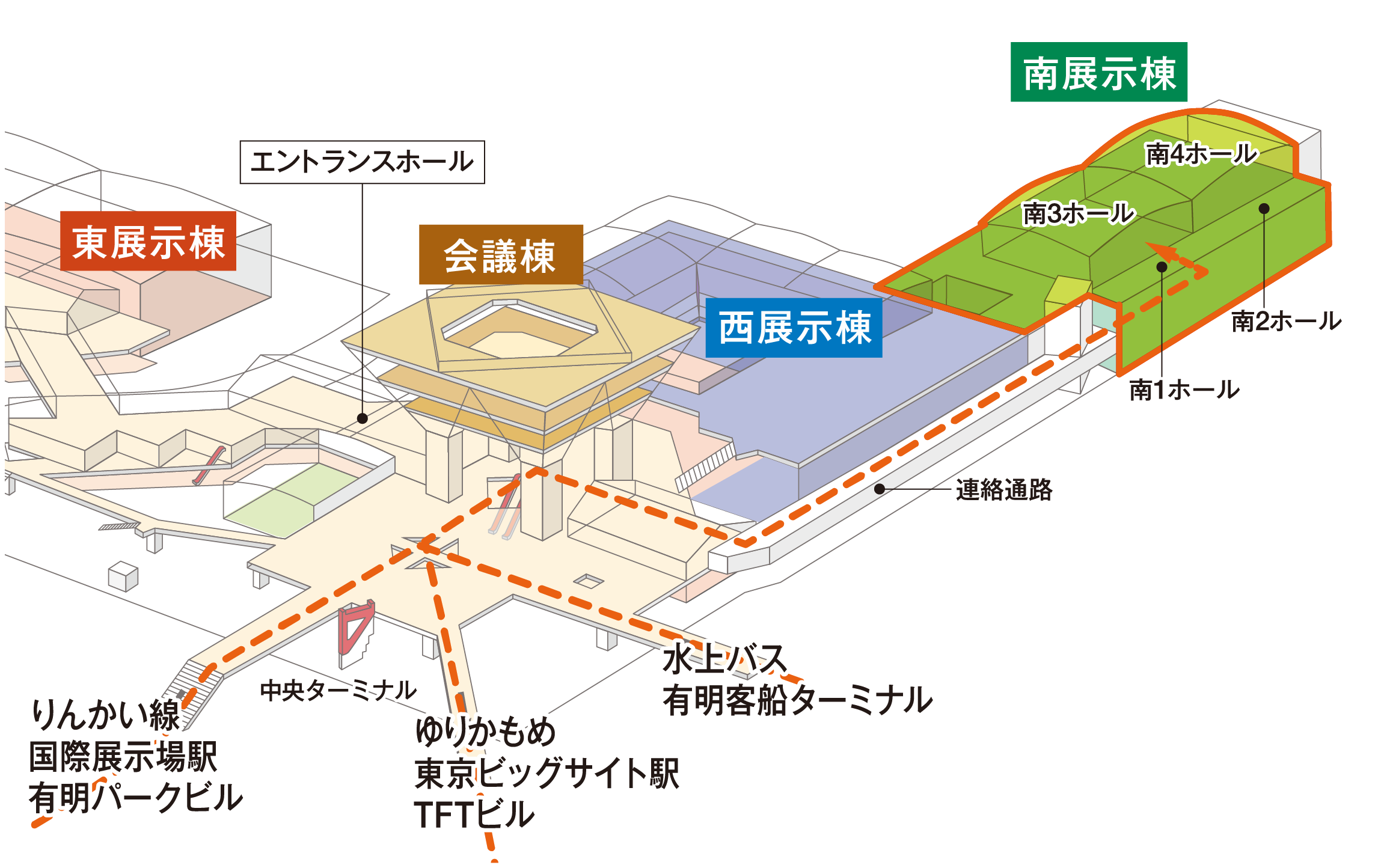 連絡通路を通って、南ホールへ向かいます。